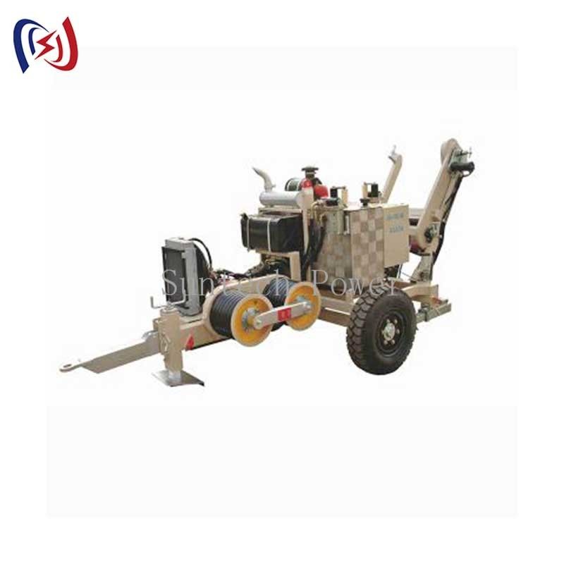 This hydraulic traction equipment features stepless adjustable traction force and speed, designed for efficient overhead line stringing operations.